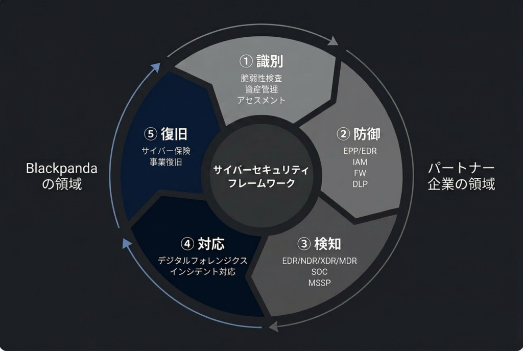 Blackpandaは、いま話した④の対応と⑤の復旧、つまり「やられた後」を専門にしてるサイバーセキュリティ企業や。自らを「サイバー消防隊」と名乗ってる。