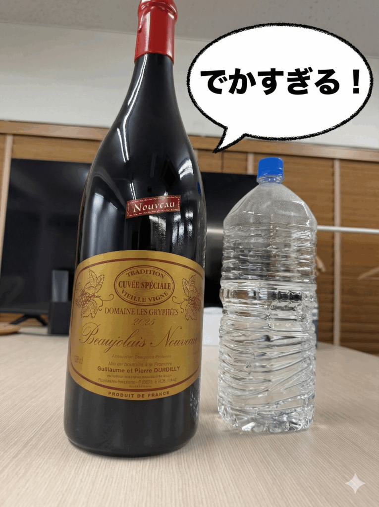 いただいたのは、なんと ダブルマグナム(3L)サイズのボジョレー・ヌーボー。